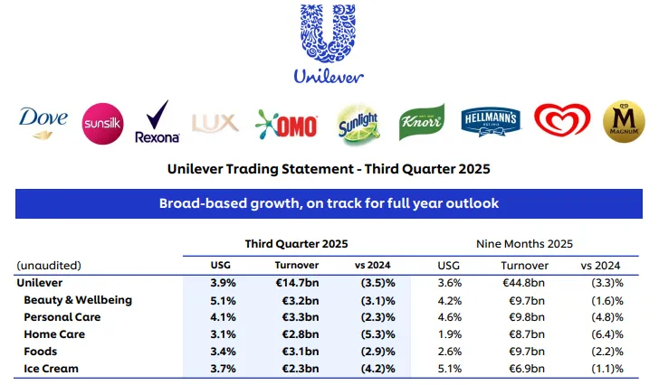 6、营业额达1214亿元!联合利华发布2025年第三季度财报
