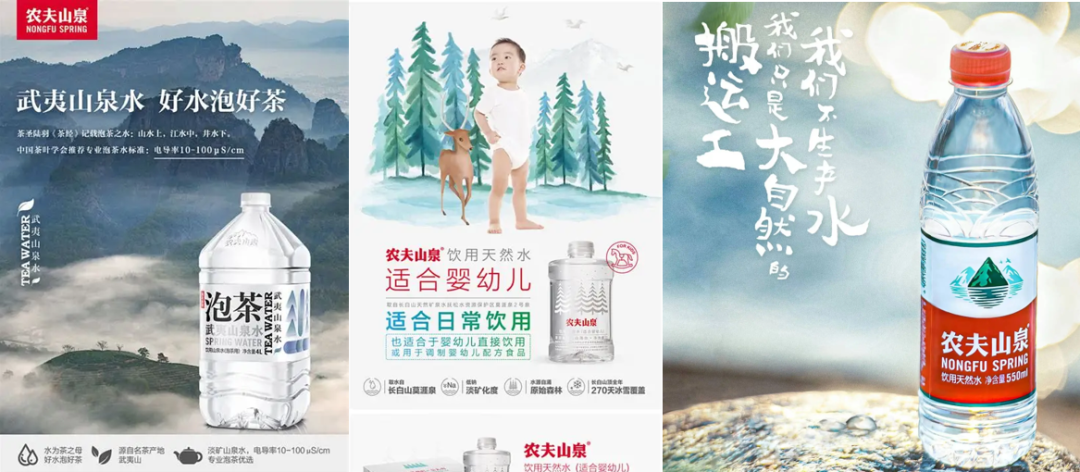 最显著的就是那句家喻户晓的“我们不生产水,我们只是大自然的搬运工。” 这句天才的广告语,将农夫山泉与其所有其他瓶装水区分开来。它传递的价值不再是“解渴”,而是“获得一份来自大自然的健康补给”。无论是长白山、千岛湖等纯净水源地的宣传,还是瓶身上标志性的山水图案,都变成了支撑其“天然、健康”体验的有力证据。