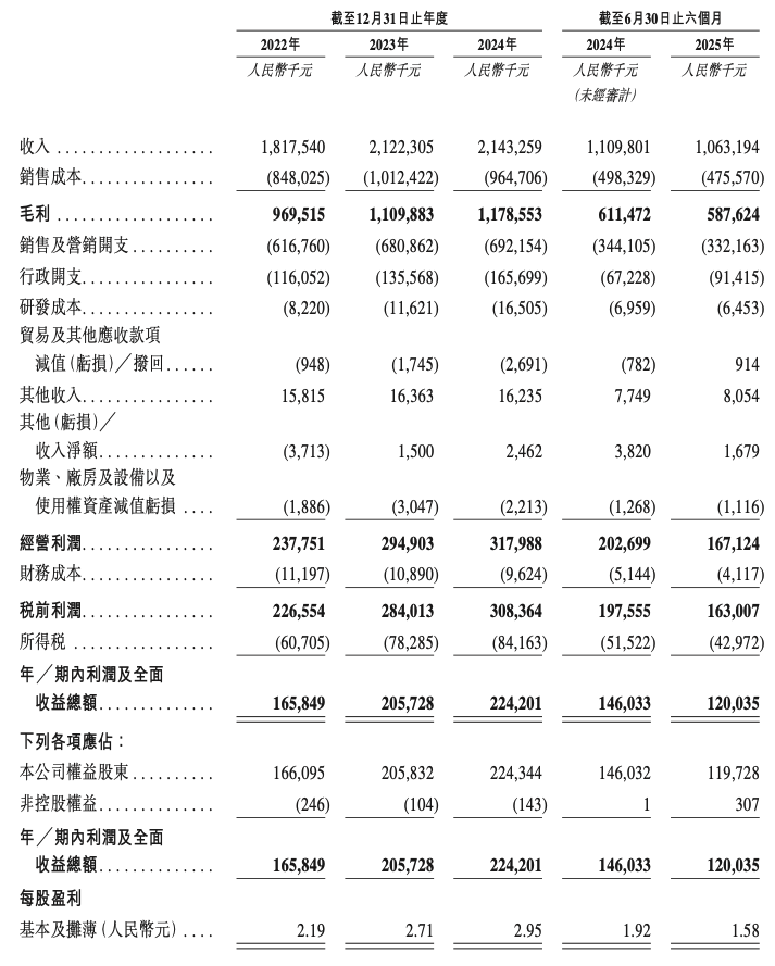 而到了2025年上半年,八马茶业营收为10.63亿元,同比下滑4.2%;净利润为1.20亿元,同比下滑17.8%。对此,八马茶业解释称,收入减少主要由于线下渠道销售下降,同时行政开支上升也导致利润下降。