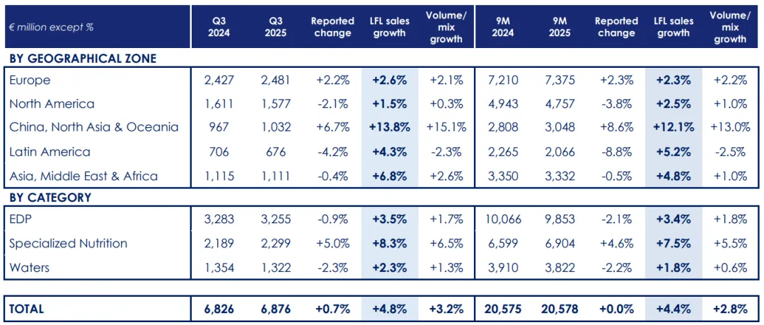 7、销售额同比增长4.8%!达能发布2025年第三季度财报