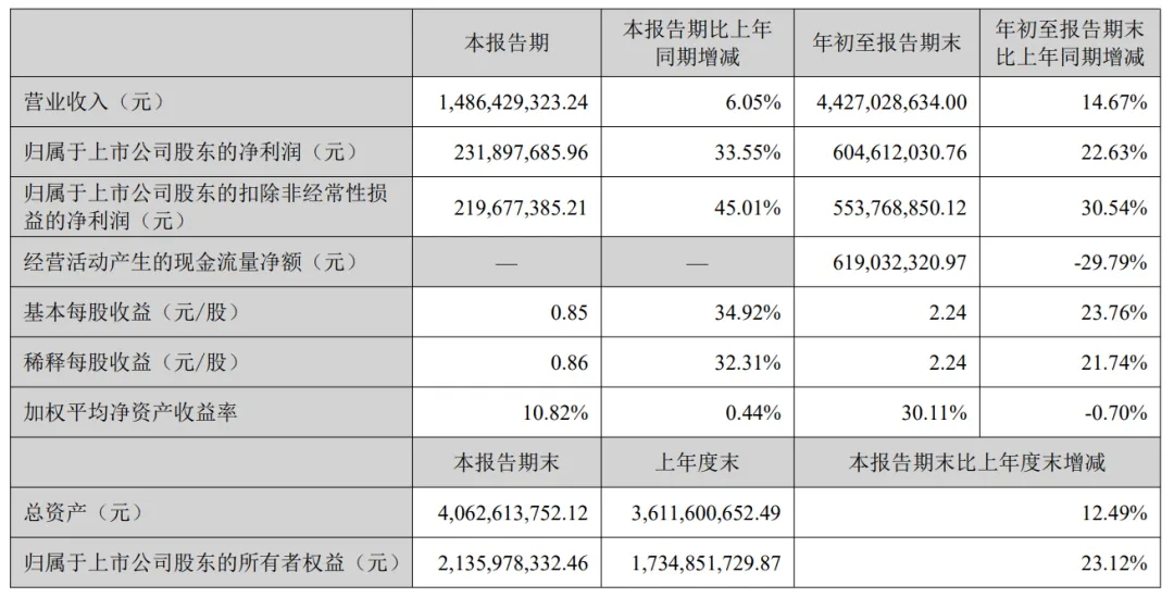 9、净利润同比增长33.55%!盐津铺子发布2025年第三季度财报10月27日,盐津铺子发布2025年三季报。报告显示,公司第三季度营收为14.86亿元,同比增长6.05%;归母净利润为2.32亿元,同比增长33.55%;扣非归母净利润2.20亿元,同比增长45.01%。前三季度营收为44.27亿元,同比增长14.67%;归母净利润为6.05亿元,同比增长22.63%;扣非归母净利润5.54亿元,同比增长30.54%。