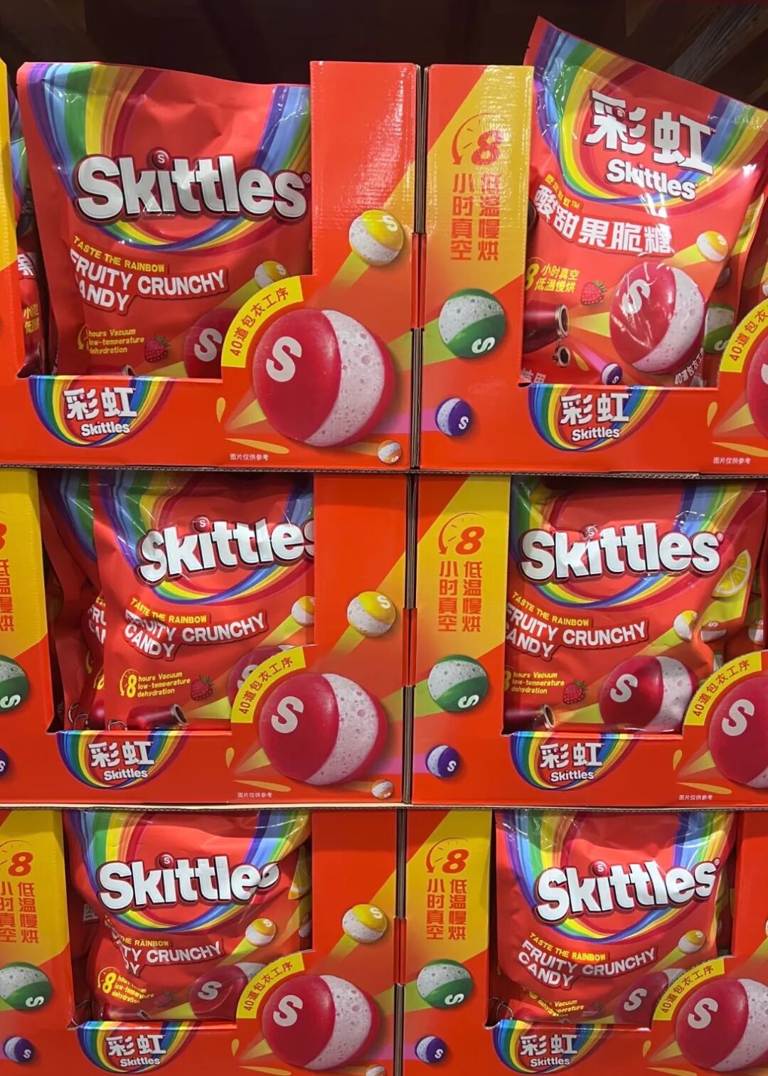 就在去年,玛氏的冻干彩虹糖在海外爆火,今年9月份这款在海外十分受欢迎的彩虹糖新品酸甜果脆糖在山姆上市。