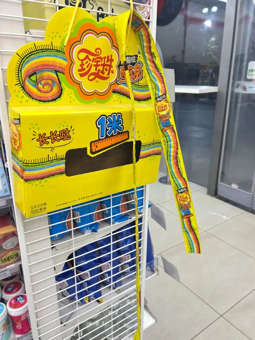 国内今年也掀起酸条糖的热潮,珍宝珠更是推出长达一米酸酸长长的酸条糖,好玩、好看、好吃,据便利店工作人员透露:“这款产品卖的挺好的,需要经常补货。”