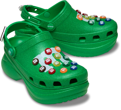 鞋面施以闪粉亮片装饰,并点缀多枚M M’S®豆主题智必星鞋花,搭配经典“M”标识甜美又元气。既融入M M’S®的玩趣元素,也延续Crocs一贯的全天候舒适体验;大胆的厚底设计更为整体造型增添时尚高度,兼顾自在体验与时尚感。