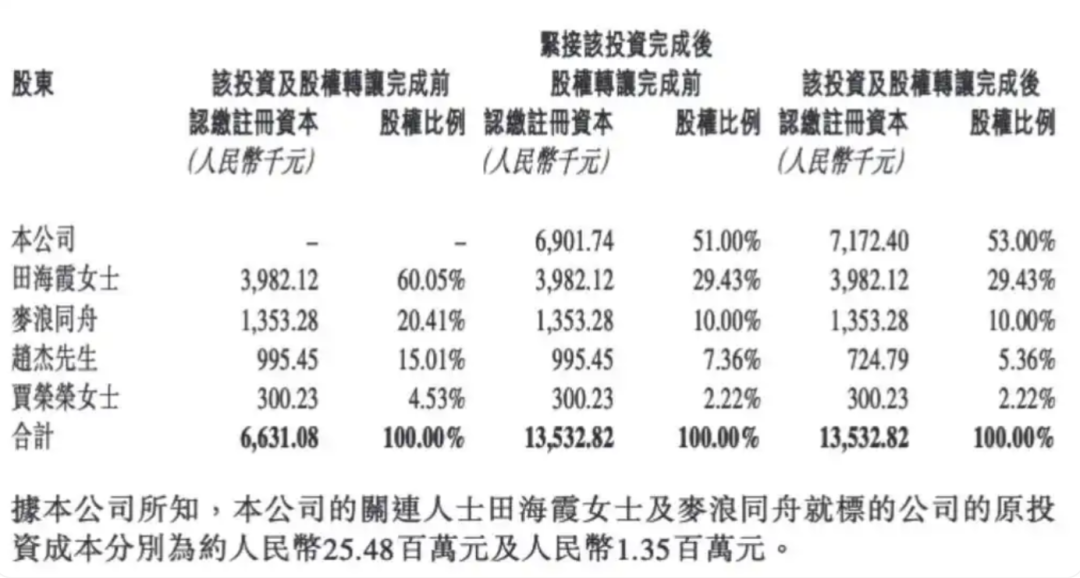 据天眼查显示,鲜啤福鹿家品牌母公司福鹿家(郑州)企业管理有限公司的实控人为田海霞,麦浪同舟、赵杰以及贾荣荣为股东。在这笔交易前,田海霞直接持有福鹿家60.05%股权,并通过郑州麦浪同舟企业管理合伙企业间接持股20.41%。交易完成后,田海霞持股降至29.43%。